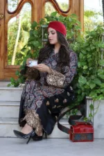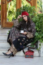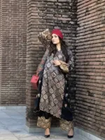 Just perfect for all those sufi nights and evenings ,enigmatic geometrical patterns , this organic resist dyed , handblock print 2- piece choga set is fused with heavy work of metallic threads (tilla) making it unique and one of its own kind.