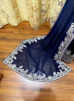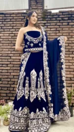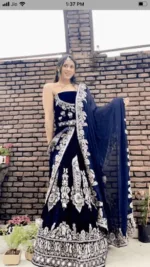 Heavy Velvet Lehenga Blouse Odhani with zardozi tilla in deep blues