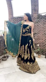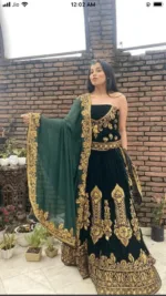 Heavy Velvet Lehenga-Blouse-Odhani with zardozi tilla in deep greens