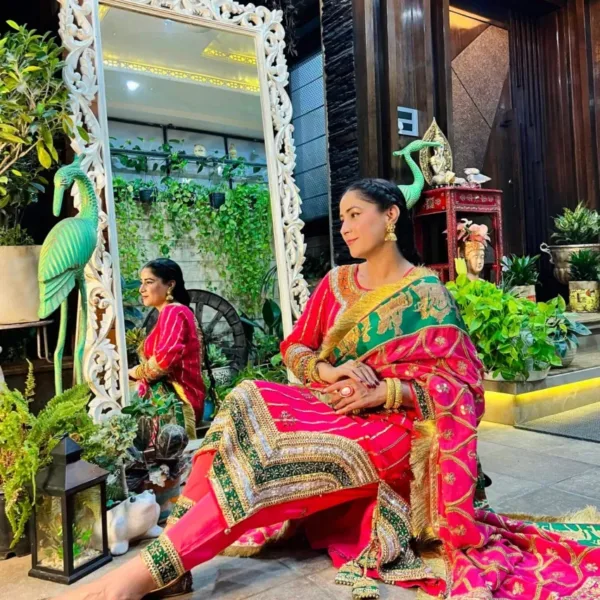 The craft involves magnificent heavy embroidered work of Dabka , Kota , Salma , Sitara on very pure fabrics. Floral , animal and bird motifs are elaborately sewed to enhance the richness of the garment.