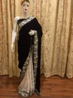 Heavy Velvet- Tulle Embroidered Saree with Velvet doshala